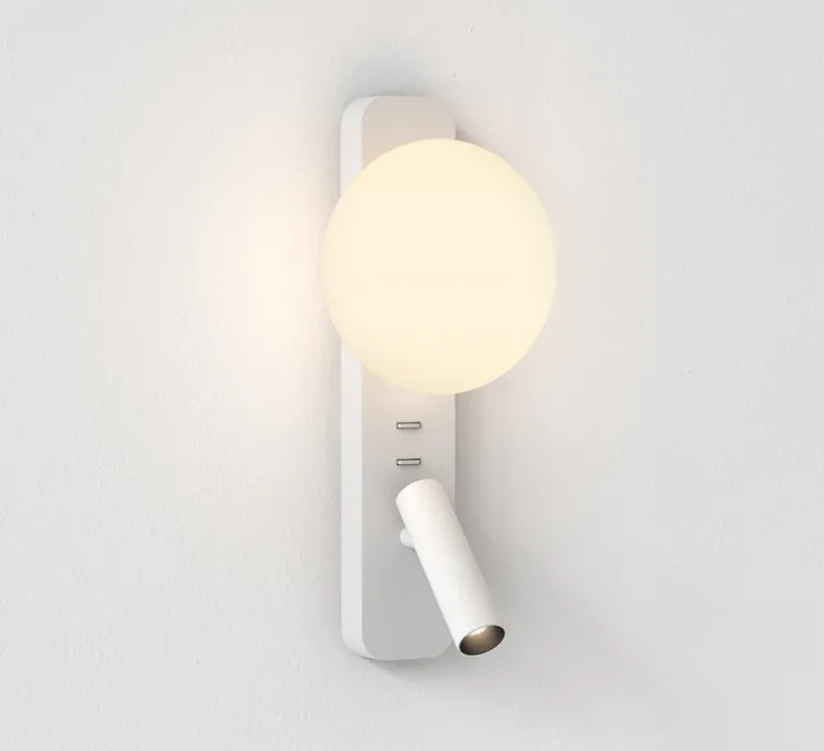 Découvrez l’élégante applique murale / liseuse Zeppo Reader, finition blanc mat, imaginée par le studio de la marque britannique Astro.