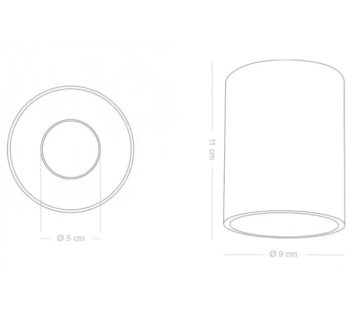 Le plafonnier Annabelle mesure 11cm de profondeur et 9cm de diamètre. L’ampoule Led GU10 d’une puissance maximale de 10W n’est pas fournie mais est recommandée pour le bon fonctionnement de votre luminaire. Entraxe : 6,5cm. Vis de fixation non incluses.