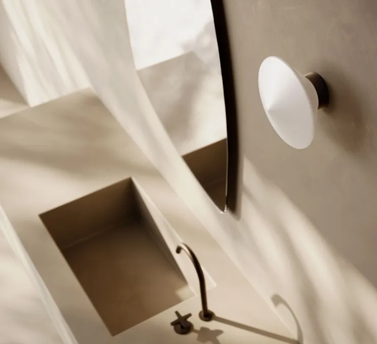 Foam allie élégance et fonctionnalité avec sa base circulaire en bronze et son diffuseur en verre qui offre une lumière directe mais adoucie. Sa forme en diamant apporte une touche contemporaine à tout espace, en particulier dans les salles de bains où son design épuré et sa luminosité douce créent une atmosphère relaxante et accueillante. En effet, Foam est équipée d’un IP44 ce qui la rend idéale pour les pièces d’eau.
