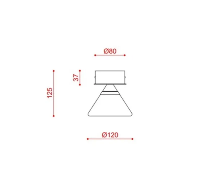 Ce modèle intègre une source LED d’une puissance de 2,7W est dimmable en coupure de phase diffusant 350 lm avec une colorimétrie de 2700K (blanc chaud). Ses dimensions sont de Ø12 cm et H13 cm, avec une installation fixe en saillie. Driver inclus.