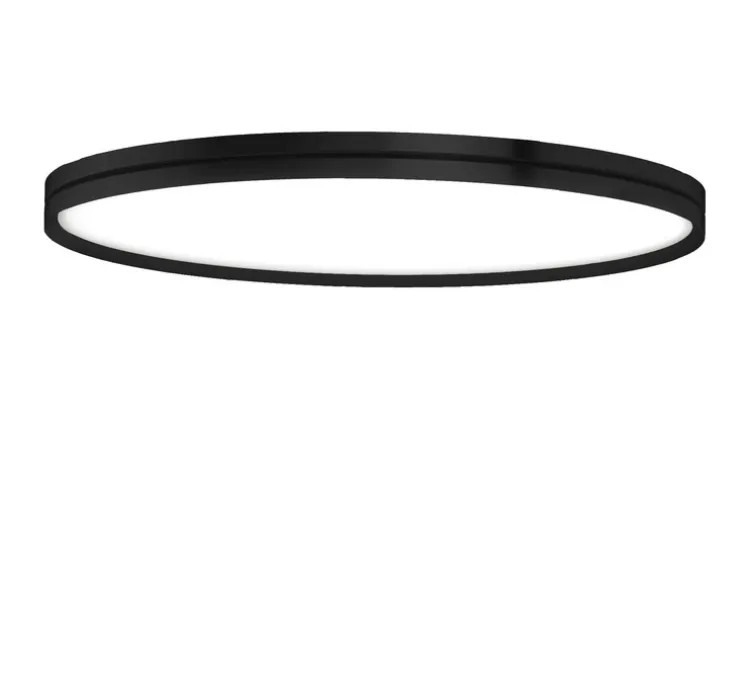Ce plafonnier composé de deux anneaux en aluminium de forme circulaire est composé d’un diffuseur en acrylique opale qui dissimule un module LED dégageant une lumière de 3000K et 7960lm.