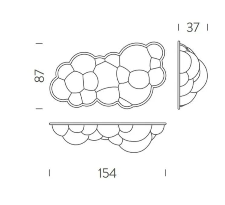 Elle se distingue par sa forme généreuse et enveloppante, réalisée en moulage rotatif pour diffuser la lumière à 360°, transformant plafond ou mur en source lumineuse douce et homogène. Sa silhouette sculpturale évoque un nuage, invitant à la quiétude tout en affirmant sa présence visuelle dans l’espace.