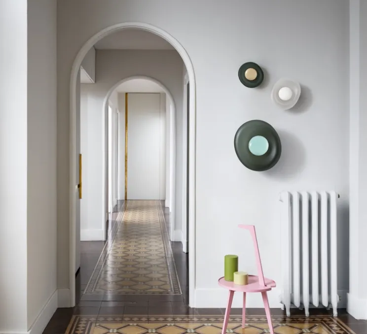 Nous recommandons cette applique en composition, que ce soit au chevet d’un lit, dans un couloir, un salon, une entrée ou encore une salle de bain. En plafonnier, il apporte une touche sculpturale et colorée à de petits espaces.