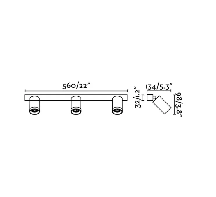 L’éclairage mesure 9,8 cm de hauteur max selon l’inclinaison des spots et 56 cm de longueur. Les trois ampoules LED GU10 d’une puissance maximale de 8W ne sont pas fournies mais sont recommandées pour un éclairage optimal. Un modèle au coloris blanc est aussi disponible.