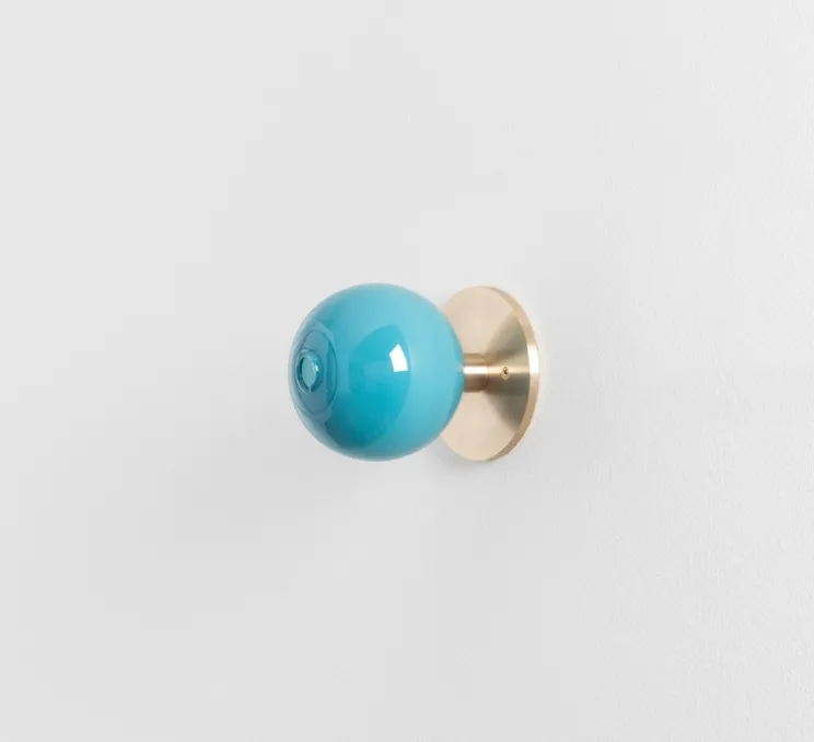 Voici l’applique et plafonnier Stem x1 en verre bleu et finition laiton brossée, conçus par le duo de designers Karen Gilbert et Paul Pavlak pour l’emblématique maison d’édition, SkLO Studio.