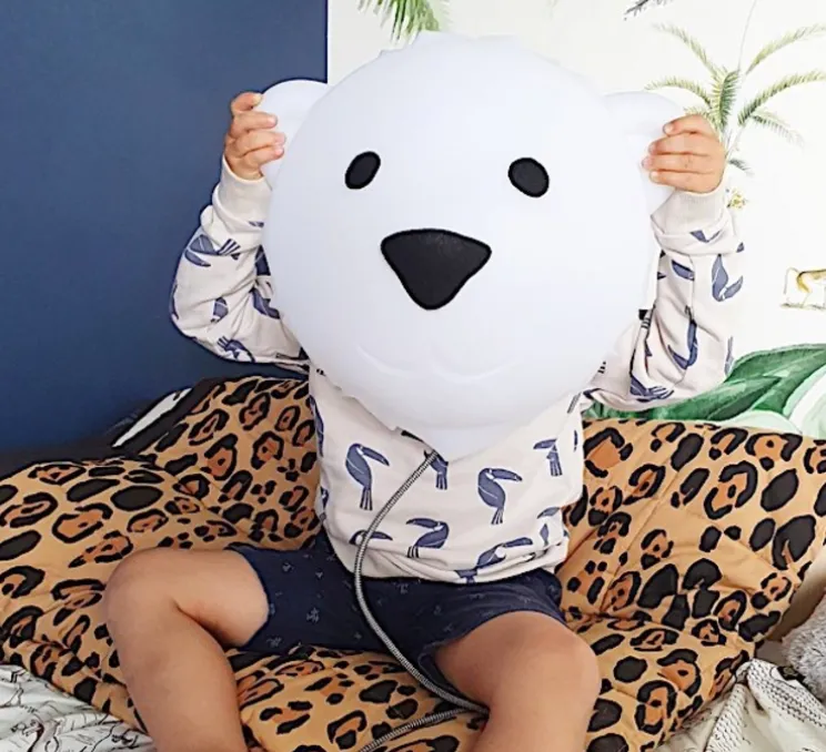 Björn Medium en forme d’ours souriant, avec son interrupteur sur la cordelette, s’allume et s’éteint facilement. Cette veilleuse dispose d’une fonction dimmable. Vous pouvez donc varier l’intensité lumineuse et rassurez vos enfants le soir grâce à sa lumière tamisée.