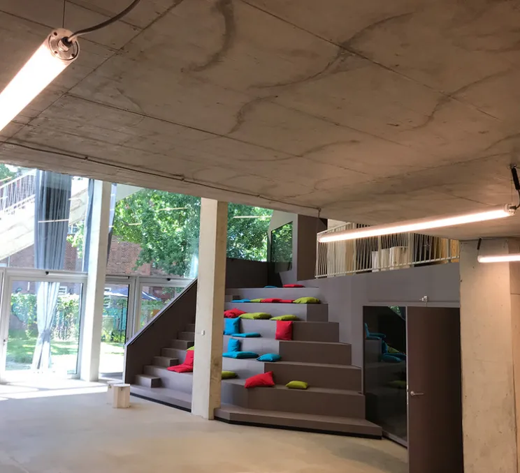 Cette suspension est idéale pour les grands espaces publics comme les lycées, les halls ou encore les bureaux et entrepôts. Mais elle peut également s’utiliser à la maison pour une esthétique plus architecturale.