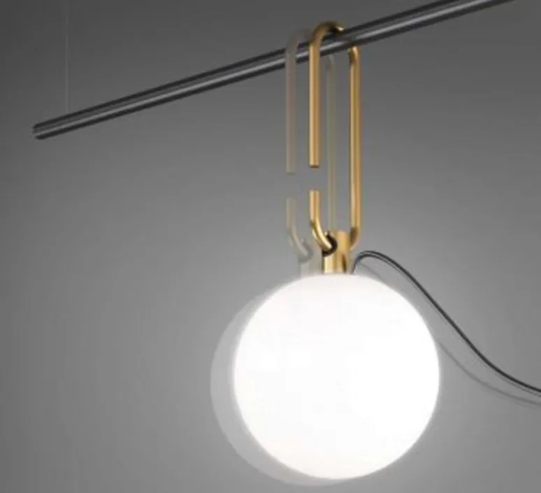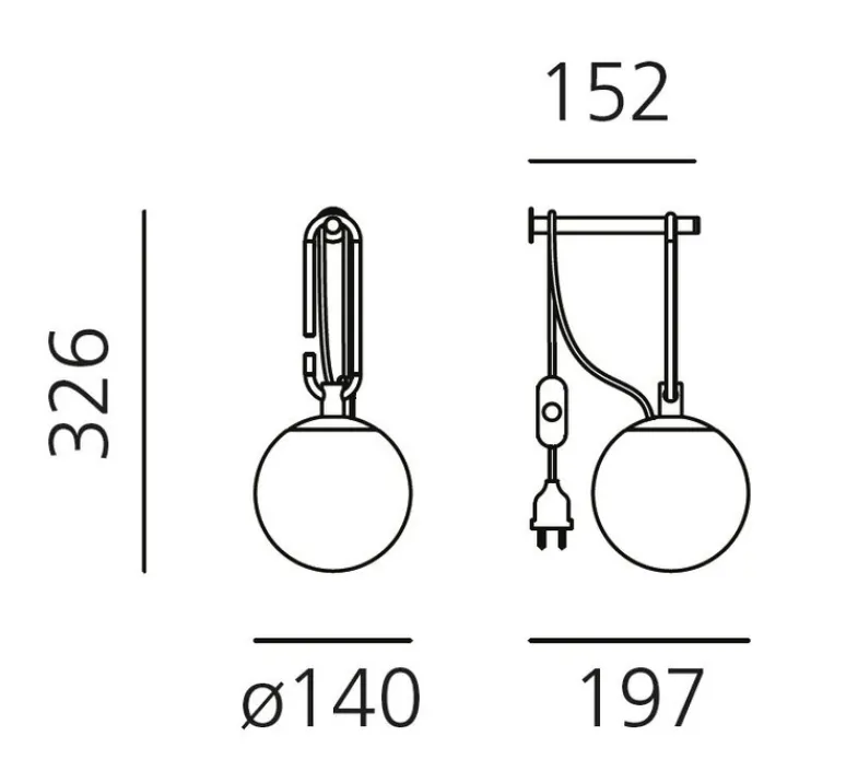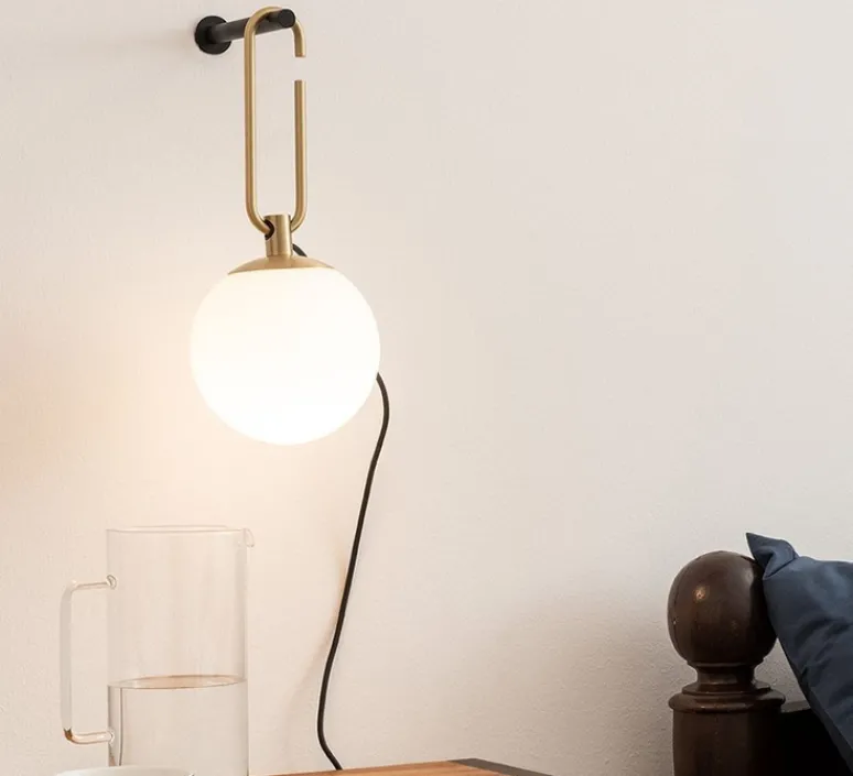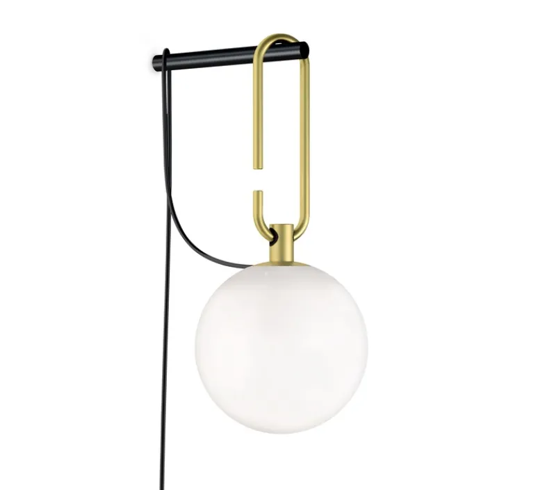 NH est formé d’une sphère en verre soufflé blanche (diamètre 14cm) ainsi que d’un anneau en laiton brossé. Celui-ci s’accroche à une structure murale en aluminium peint en noir. Cette applique en aluminium mesure 152cm de long. La source lumineuse n’est pas incluse. Nous vous conseillons une ampoule LED E14, 5W. Interrupteur avec prise.