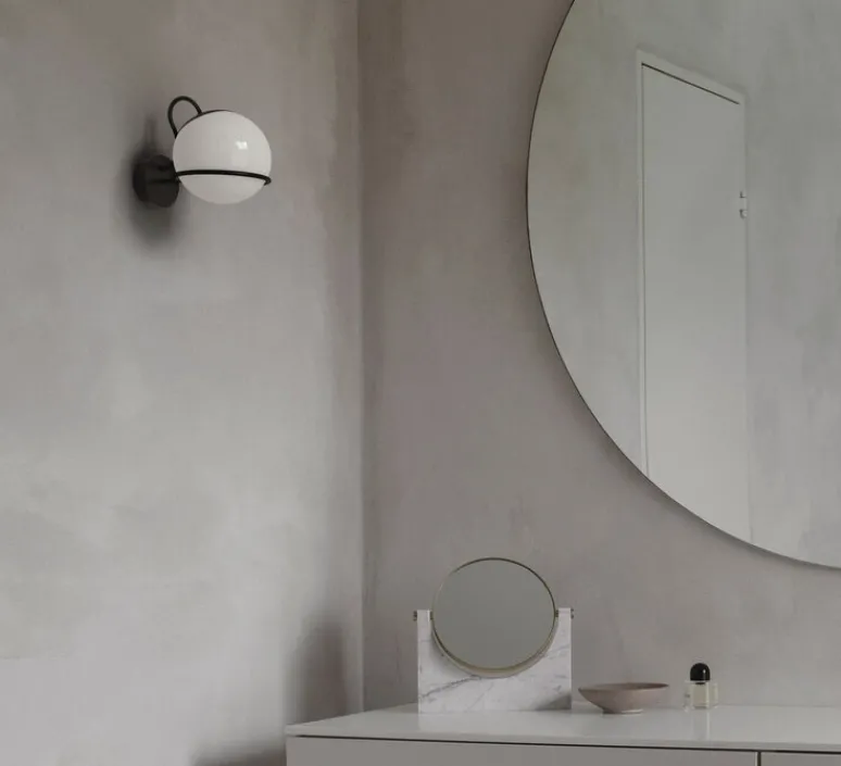 Avec son verre oplalin sphérique avec une structure noire, cette applique fait partie de la collection iconique de Gino Sarfatti. Ce luminaire a été conçu initialement en 1959 et a été réédité en 2018 !