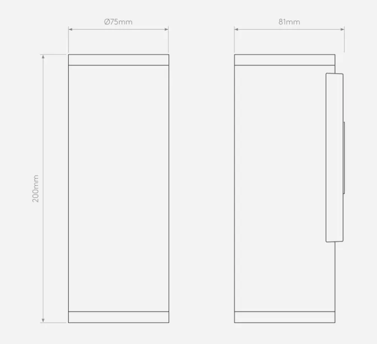 - L 7.5cm x H 20.0cm x P 8.1cm