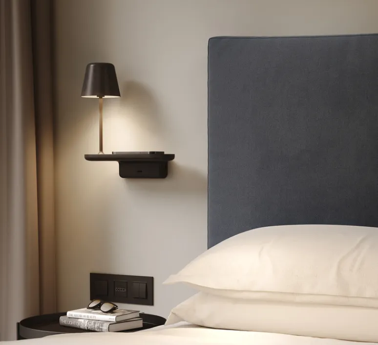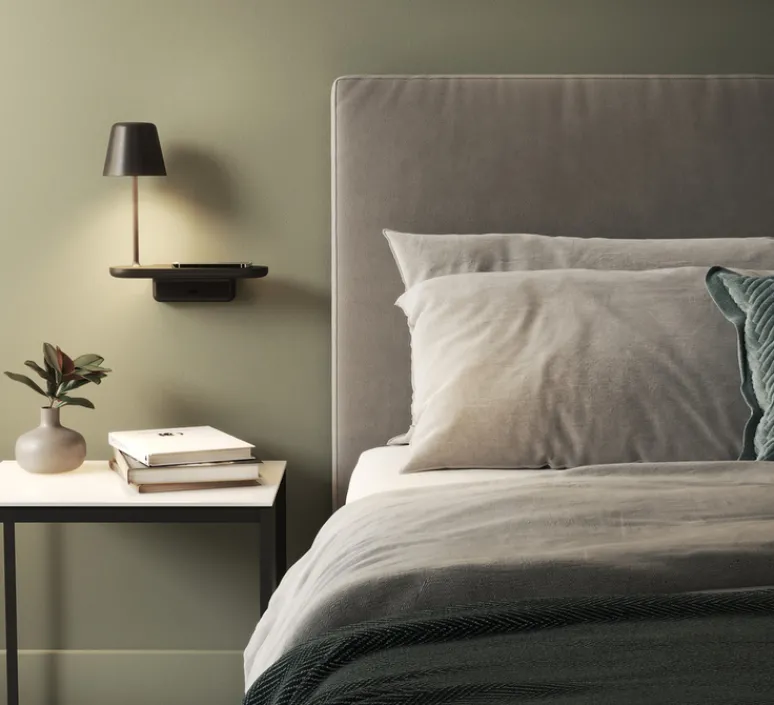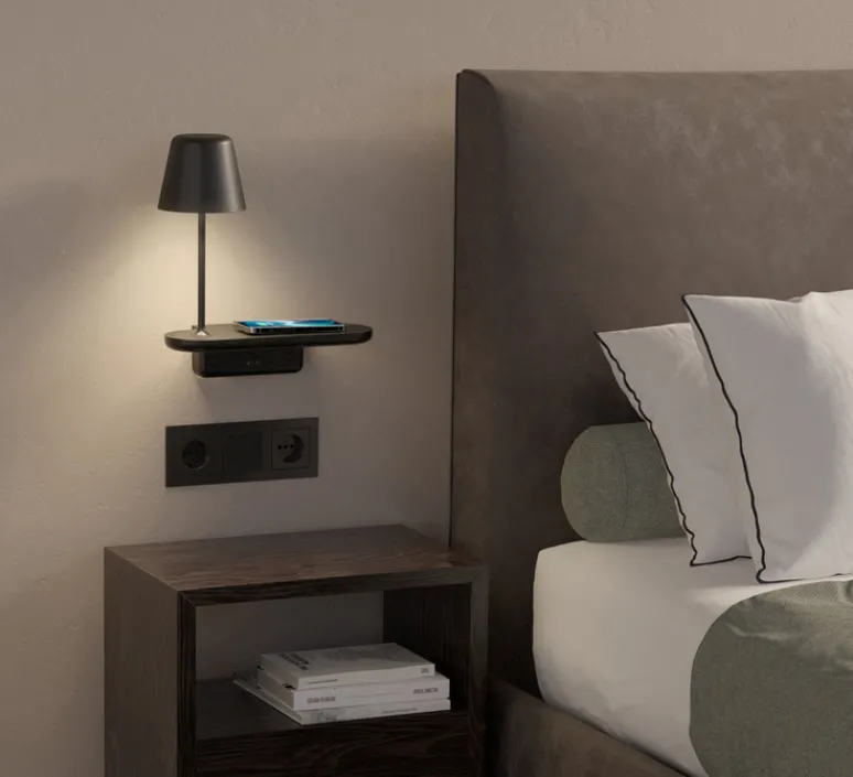 L’applique murale Ito est l’association entre une lampe et une station de recharge sans fil pour vos appareils électroniques. Elle est idéalement positionner à côté de votre tête de lit, au dessus d’une table de chevet. Le luminaire a été conçu en silicone et aluminium moulé sous pression. Même éteinte, l’applique continue de charger vos appareils. Par ailleurs, la lampe peut être orienter du côté droit ou gauche, selon vos envies.