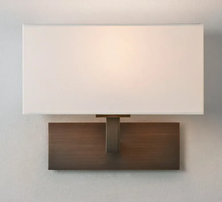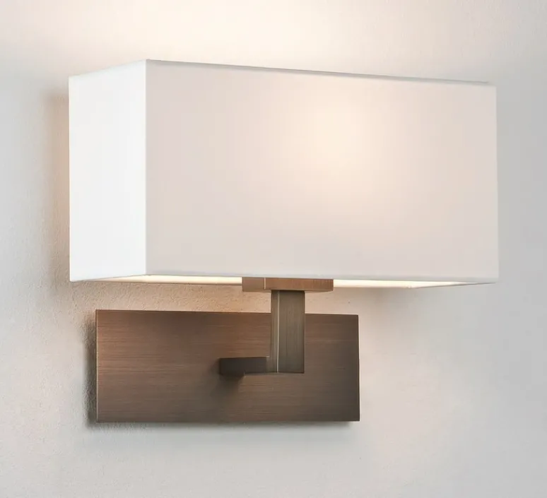Découvrez l’applique murale Park Lane, finition bronze, accompagnée de son abat-jour Rectangle 250 blanc et imaginée par le studio de la maison britannique Astro.