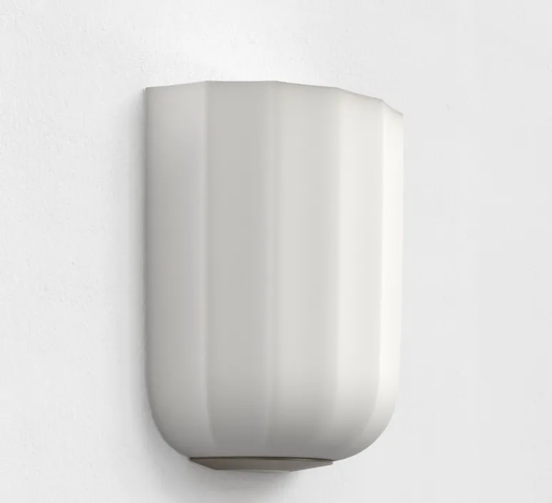 Ce luminaire s’inspire du style néoclassique avec ses finitions en verre opale et une forme rappelant un cannelé.