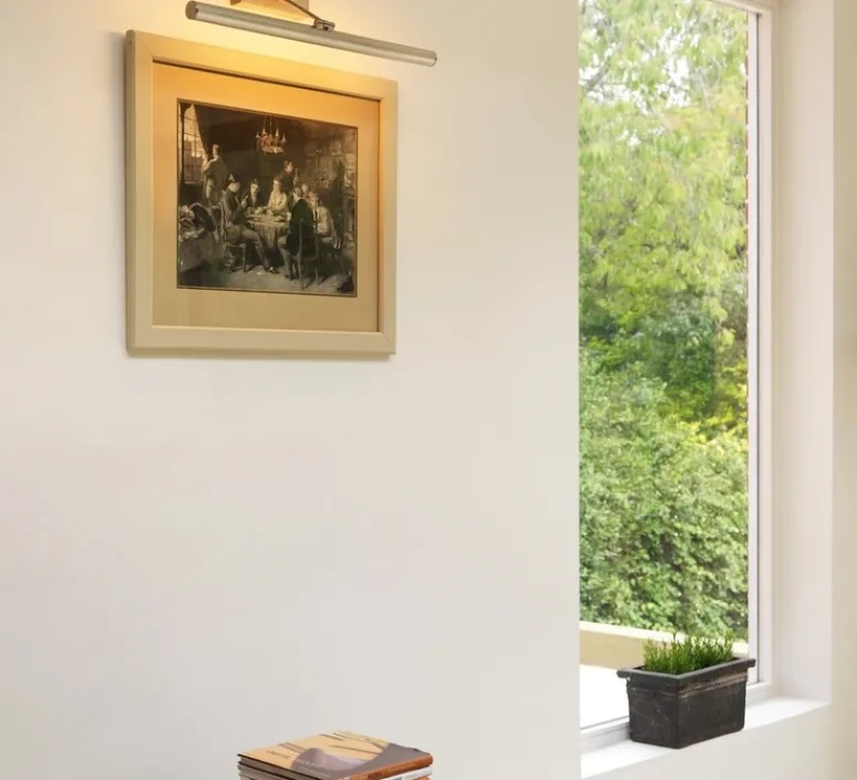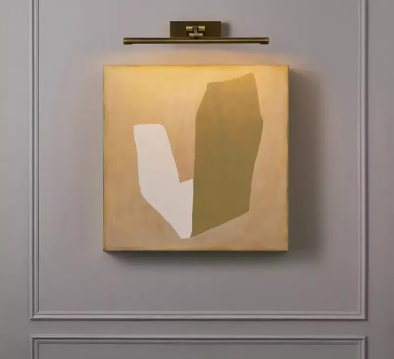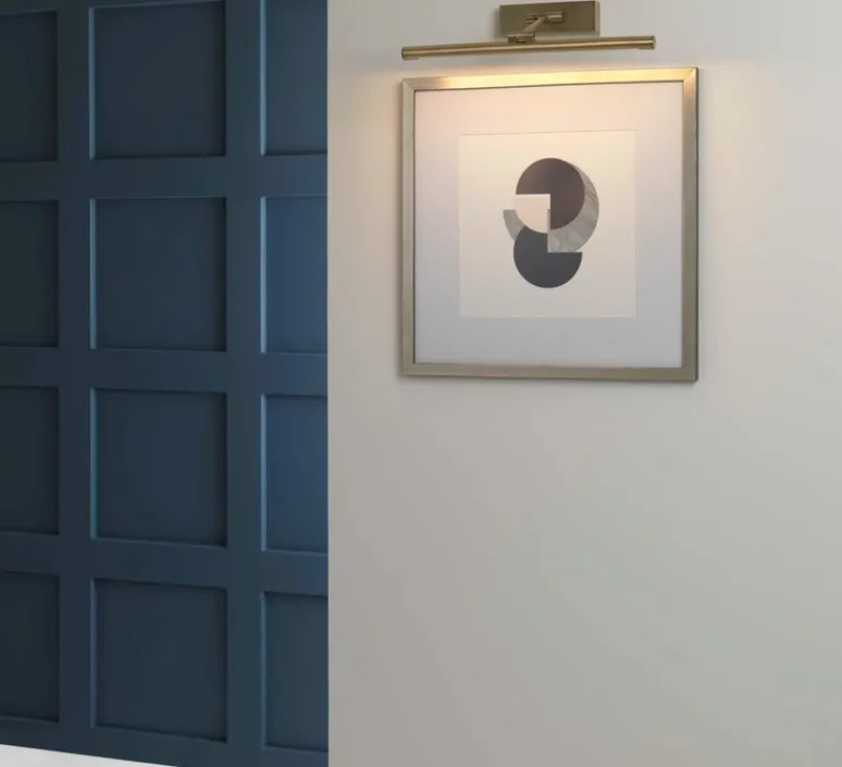 Voici l’applique pour tableaux Goya 460 Led, finition laiton brossé, conçue par la maison britannique Astro.