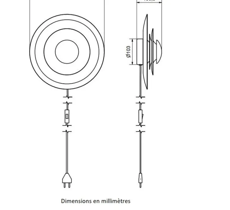 De forme sphérique, cette applique murale est composée de 3 disques qui donnent un aspect géométrique et unique au luminaire.