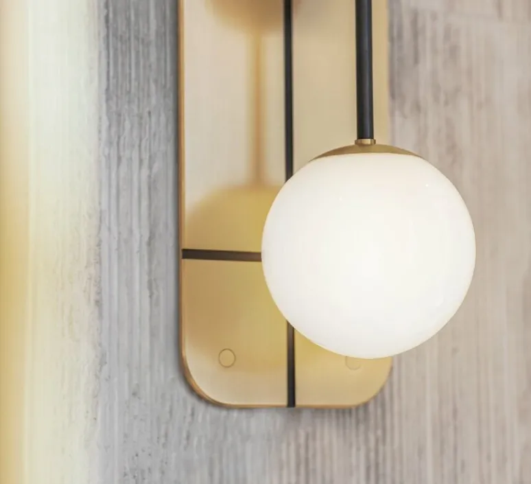 Cette applique très graphique est conçue pour toutes les pièces de la maison. Ses formes géométriques et ses matières nobles donnent un rendu des plus chics.
