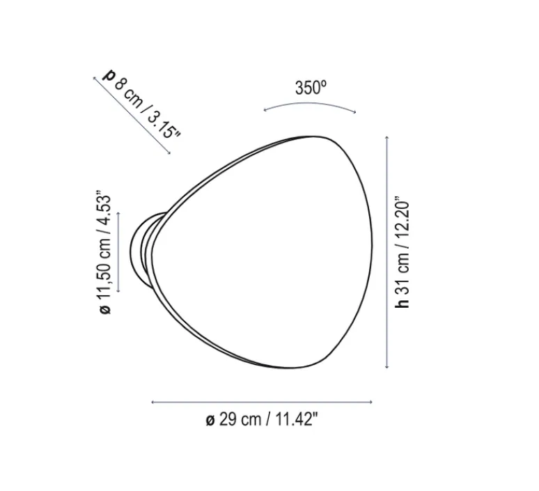 L’applique mesure 29cm par 31cm. La source lumineuse LED 17W est fournie et dispose de 2700K, 1920Lm et à un rendu des couleur supérieur à 90 !
