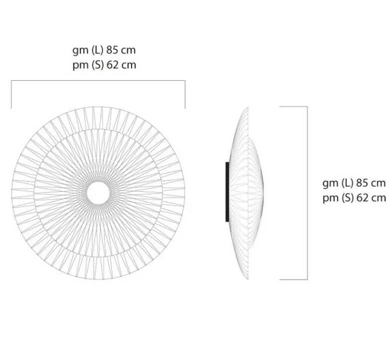 Élégante et classique, la Diva diffuse une lumière douce et raffinée. Une structure légère en acier aimanté supporte une grande coupole de papier. Une autre coupole plus petite et inversée projette la lumière sur la partie supérieure.