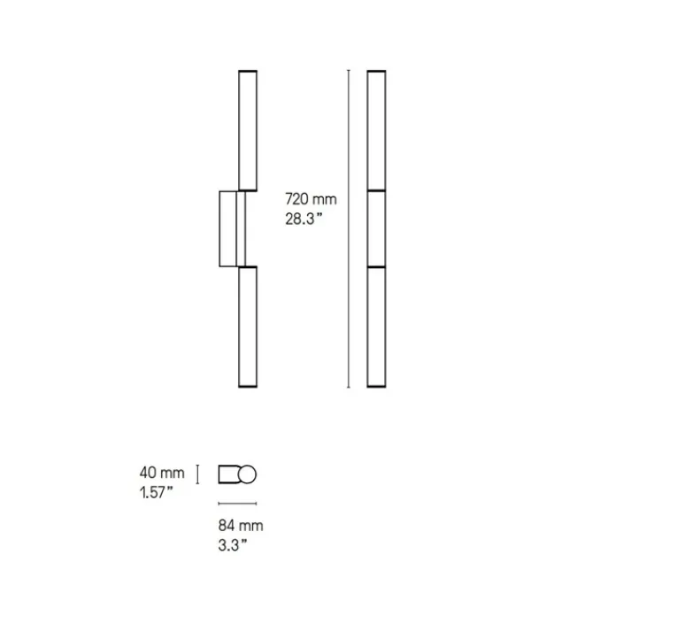 L’applique mesure 72cm de hauteur, 4cm de longueur et 8,4cm de profondeur. Elle est fournie avec sa source de lumière LED diffusant 2700 kelvins et 960lm. Variable coupure de phase.