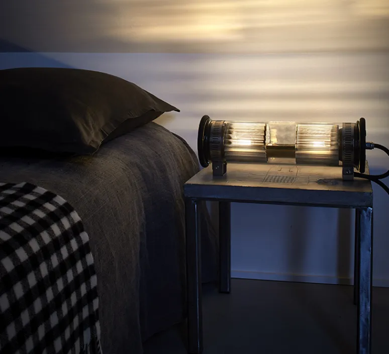 Le luminaire In The Tube prend, comme son nom l’indique, la forme d’un tube et est composé d’un corps transparent finissant par des embouts noirs, d’un réflecteur argenté et de deux mailles dorées recouvrant les sources de lumière. Versatile et élégant, In The Tube s’intègre aussi bien dans des intérieurs classiques que contemporains, que ce soit posé sur une table de mur ou installé sur un mur de pièce de vie ou de couloir.