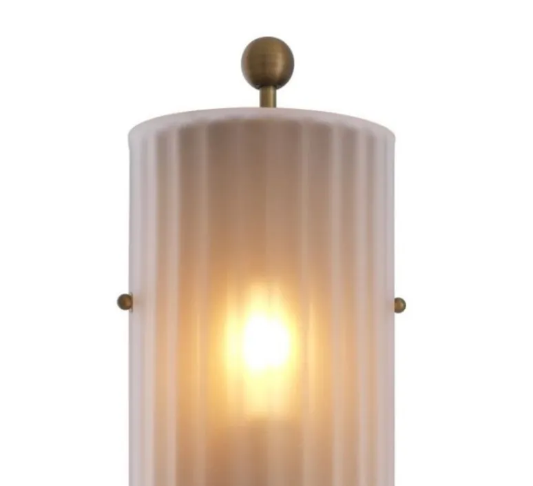 Avec plus qu’un soupçon d’Art Déco, la lampe murale Juno crée plus de profondeur et d’intérêt visuel dans votre intérieur tout en fournissant une douce et chaude diffusion de la lumière qui pénètre à travers l’abat-jour nervuré en verre dépoli. Le luminaire a une finition en laiton antique et est agrémenté d’un embout en haut et en bas.