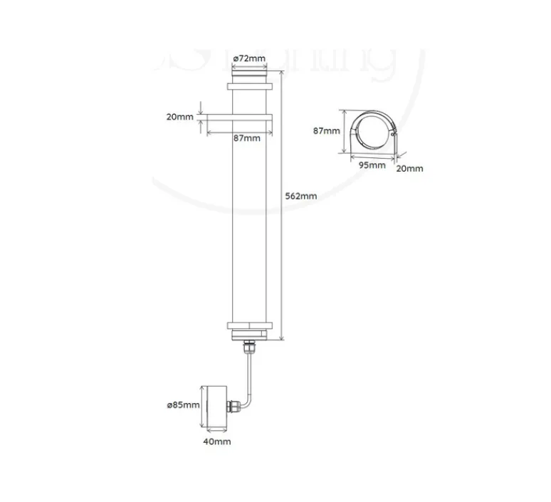 - L 7.2cm x H 56.2cm x P 7.2cm