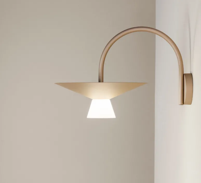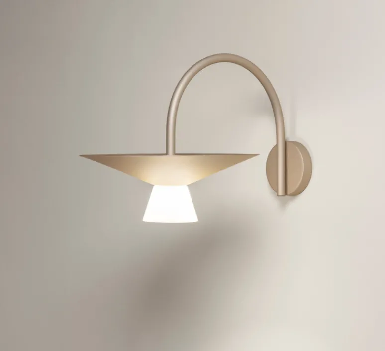 Cette applique s’impose comme une pièce graphique, pensée pour mettre en valeur les volumes tout en s’intégrant avec sobriété dans des décors soignés.