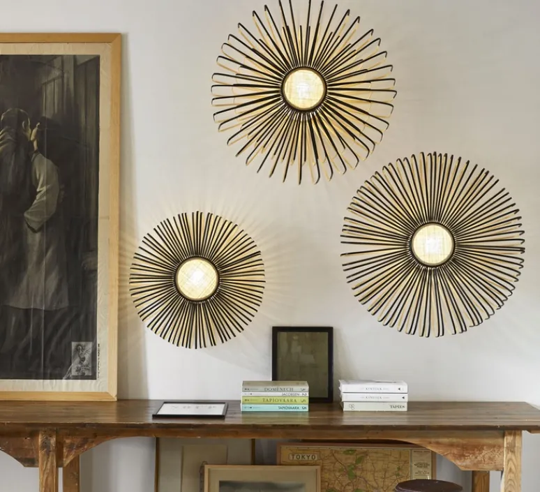 Cette applique, Bamboo Light Black XL est composée de fines tiges de bambou colorées de couleur naturelle ainsi que de couleur noir.