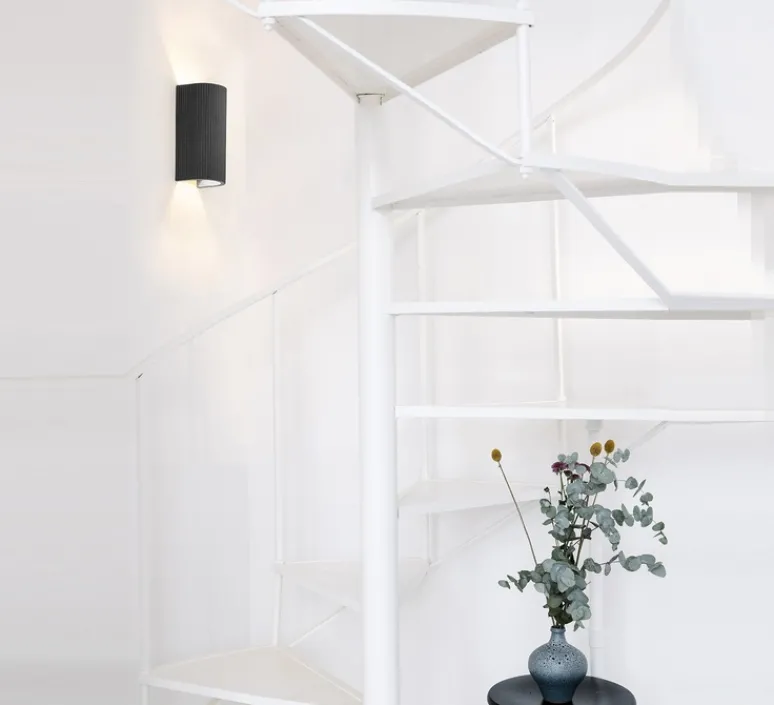 La surface cannelée des luminaires créée un captivant jeu d’ombre et de lumière raffiné qui donne à chaque pièce une ambiance unique.