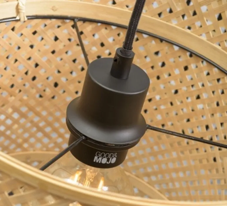 L’abat-jour mesure 50cm de diamètre et 30cm de hauteur. Le câble, en textile noir, mesure 2 mètres de long. Il est ajustable selon vos besoins.