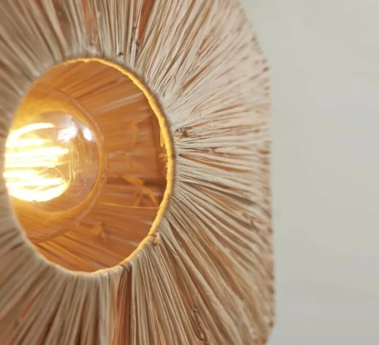 La Panama apporte une touche contemporaine à votre intérieur. Son tissage aéré en raphia permet à la lumière de se diffuser en formant des motifs captivants qui créent un jeu d’ombres et de chaleur. Ce modèle s’intègre parfaitement dans un salon ou une chambre, apportant une ambiance chaleureuse et accueillante. Que vous souhaitiez faire une déclaration audacieuse ou compléter subtilement votre décor, l’applique Panama assure une esthétique stylée et responsable.