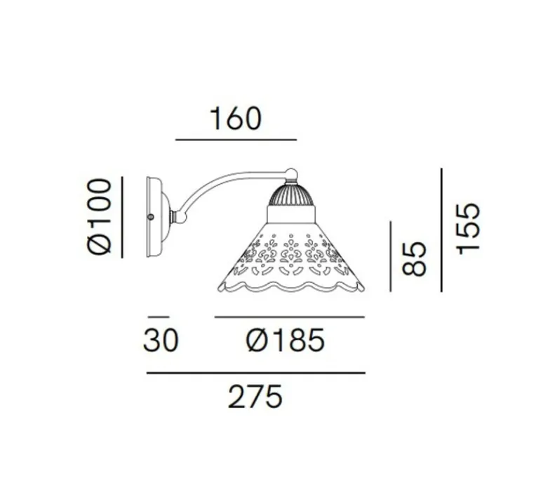 L’applique mesure 18,5cm de diamètre pour une hauteur de 15,5cm.