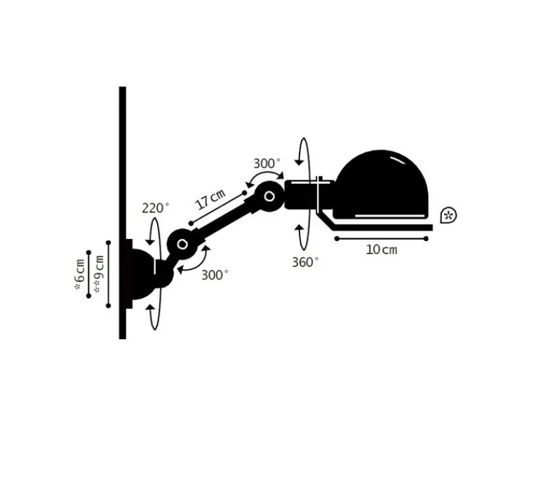 L’ampoule E14 n’est pas fournie avec cette lampe Jieldé. Cette applique est avec interrupteur