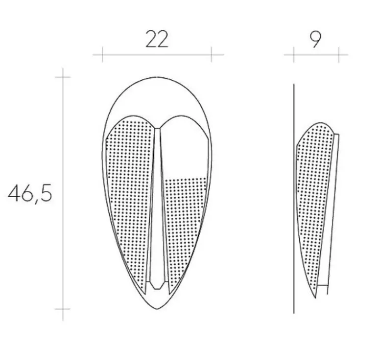L’applique mesure 46,5cm de hauteur, 22cm de largeur et 9cm de profondeur.