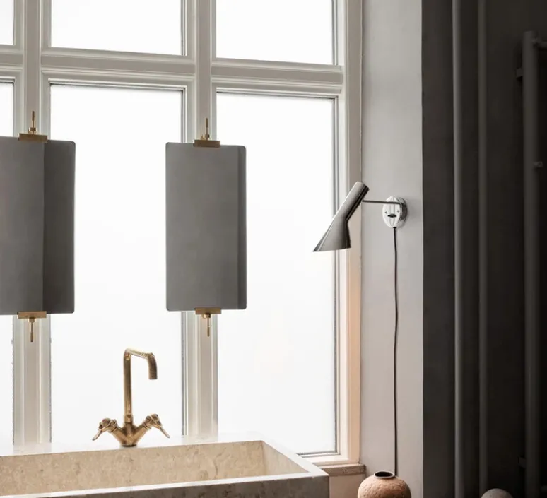 Découvrez l’applique murale AJ, conçue par le célèbre designer Arne Jacobsen pour la marque danoise Louis Poulsen.