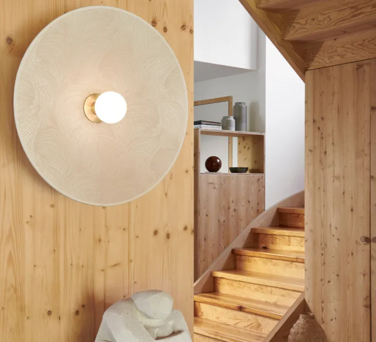 Cette applique est équipée d’une patère murale en métal peint finition sablée et adaptable DCL. Ses dimensions sont de 60cm de diamètre et de 12cm de profondeur.