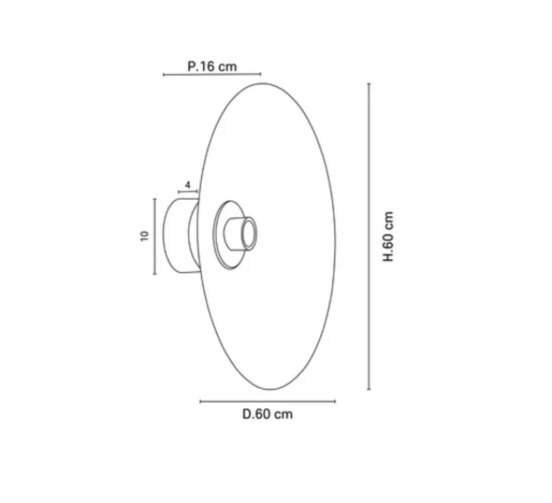 L’applique mesure 60 cm de diamètre et 16 cm de profondeur.