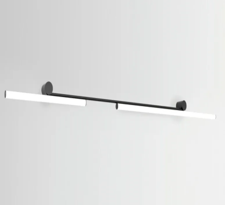 Son design découle d’une structure tubulaire aux lignes douces qui se fixe au mur. La source lumineuse est mise en avant à travers un tube rappelant un néon dont la structure noire permet de marquer les contours. C’est cette lumière diffuse qui remplit l’espace en y ajoutant de la beauté. Son design linéaire et unique, un segment de lumière presque plat, a été rendu modulaire et asymétrique pour créer un système d’éclairage doux et surprenant.