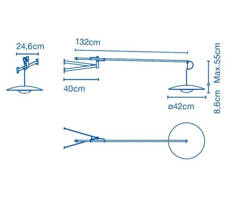 L’applique en wengé dispose d’une prise et d’un interrupteur à variation de lumière avec un abat jour de 42cm de diamètre. Son bras d’1m32 est mobile et vous permettra d’orienter la lumière à 180°.