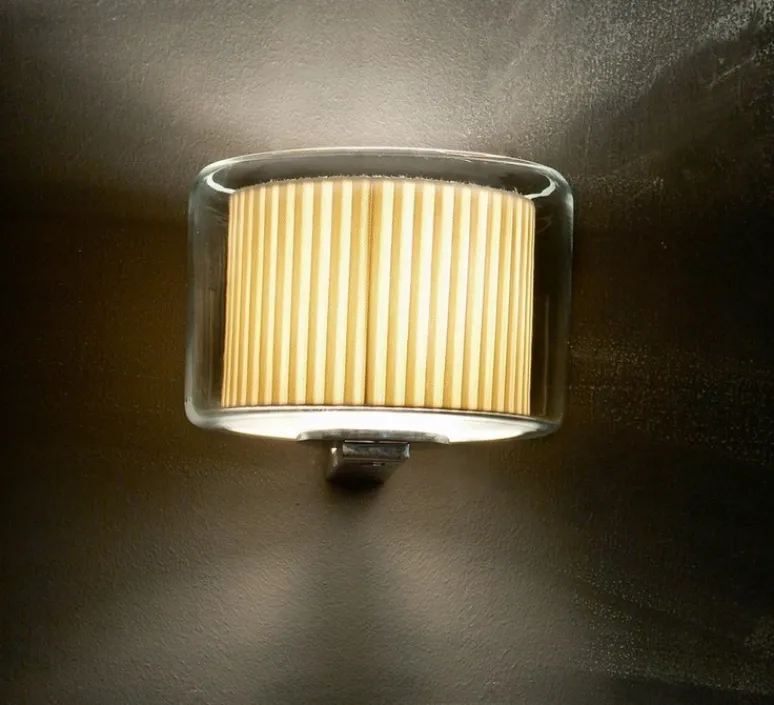 Cette applique intemporelle est composée d’une structure en verre transparent intégrant un abat-jour en tissu plissé de couleur beige naturel. Un effet textile sans les désagréments de la poussière!