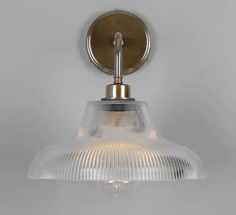L’élément central de cette applique est sa combinaison de verre et de laiton, créant un jeu subtil entre matériaux et luminosité. Le verre délicat diffuse la lumière d’une manière charmante, tandis que le laiton une touche de style industriel et d’élégance rétro.