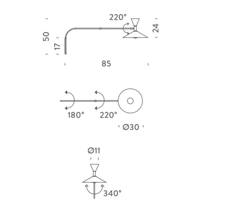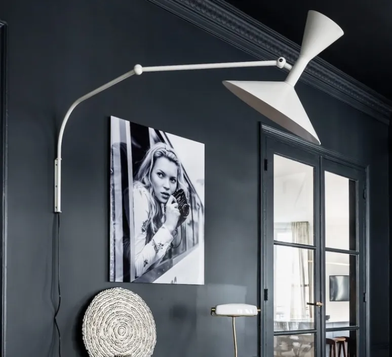 Ces luminaires sont aujourd’hui édités par Nemo Lighting pour le grand public ! Un objet fonctionnel à la fois rétro et moderne fabriqué en aluminium. Inspirée de l’éclairage industriel des années 1950, la lampe de Marseille Mini possède un abat-jour composé de deux cônes de différente taille. Le premier, de 30cm de diamètre, vient se positionner sous le second mesurant quant à lui 11cm de diamètre. Les cônes asymétriques de la lampe sont chacun équipé d’une source lumineuse indépendante afin de créer un éclairage direct ou indirect selon vos envies. L’ensemble du bras est articulable. L’abat-jour orientable peut être déplacé sur 340°.