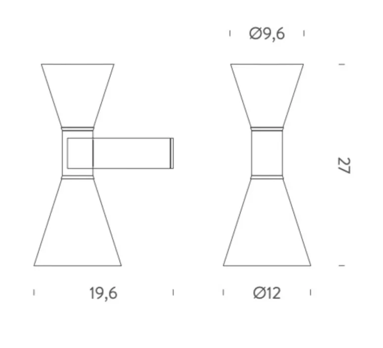 L’applique murale iconique a un éclairage direct et diffus. Ses deux diffuseurs en forme de cône dirigent la lumière vers le haut et vers le bas en créant des faisceaux lumineux homogènes et nets.
