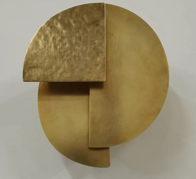 Pour cette applique, le laiton reste le matériau de prédilection puisque brossé, il se met au service d’une lumière douce et poli, il est à l’origine de vifs éclats…
