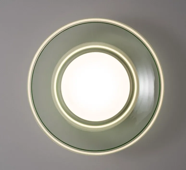 Cette version murale ou plafond est pensée pour les espaces intérieurs et repose sur une esthétique circulaire en verre finition vert d’eau, associée à une base en aluminium. Déclinée de la suspension modulable Pace, cette pièce distille la forme originelle de la série dans un volume unique, tout en conservant son langage formel rythmé.