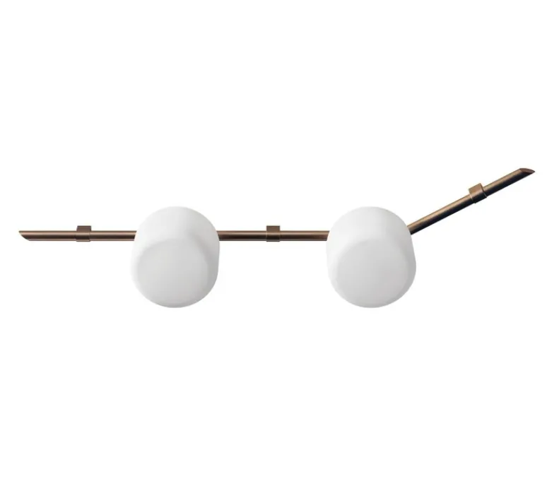 Son diffuseur en verre opalin soufflé double couche est associé à une structure en métal laqué bronze, créant un contraste subtil entre douceur et rigueur. La lumière, douce et enveloppante, se diffuse sans éblouir, apportant une ambiance chaleureuse et raffinée.