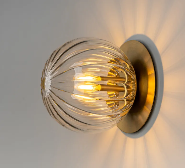 L’applique ou plafonnier Pulsar 200 Dries se compose d’une fine base en laiton, surmontée d’un globe en verre transparent strié. Sa structure discrète est la touche minimaliste qui ajoutera de la personnalité à votre décor. Sa composition très Art Déco donne du style à votre pièce, que ce soit dans une chambre, un couloir ou un salon.