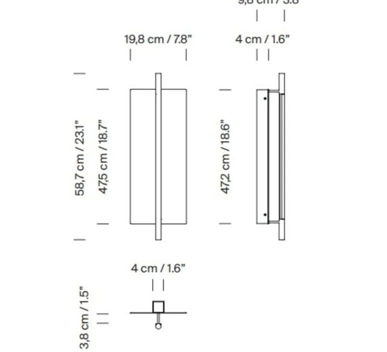 - L 19.8cm x H 58.7cm x P 3.8cm