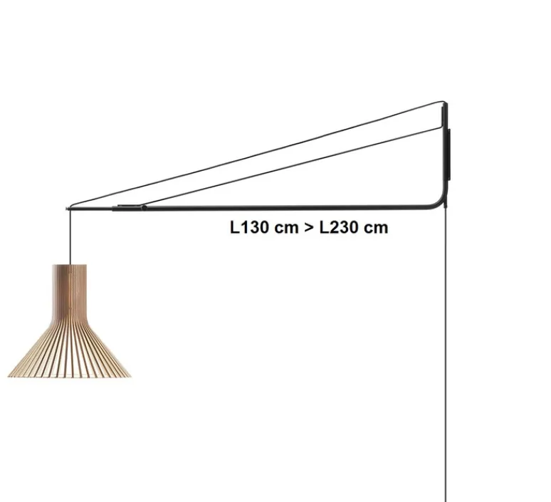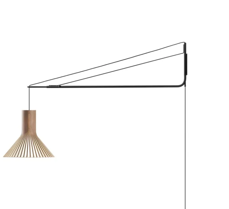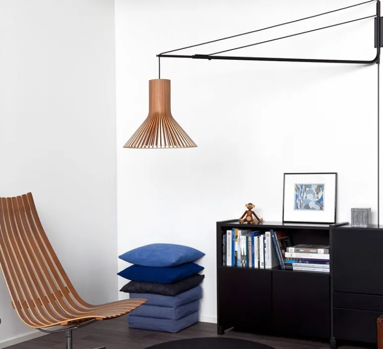 Ce long bras en bois de bouleau noir, suspend les plus grands classiques de Secto. Grâce à son câble de 8 mètres de long, son interrupteur et sa prise, vous pouvez disposez votre suspension où vous le souhaitez ! Ajustable entre 130 et 170 cm de long, elle met en valeur ici la suspension Puncto. Cette lampe scandinave au design simple est composée de lamelles de bois et contreplaqué de bouleau certifié PEFC, un matériau écologique. Elles sont reliées à une structure légère en contreplaqué utilisé pour l’aviation. Tous les luminaires Secto sont fabriqués à la main par des artisans finlandais qualifiés.