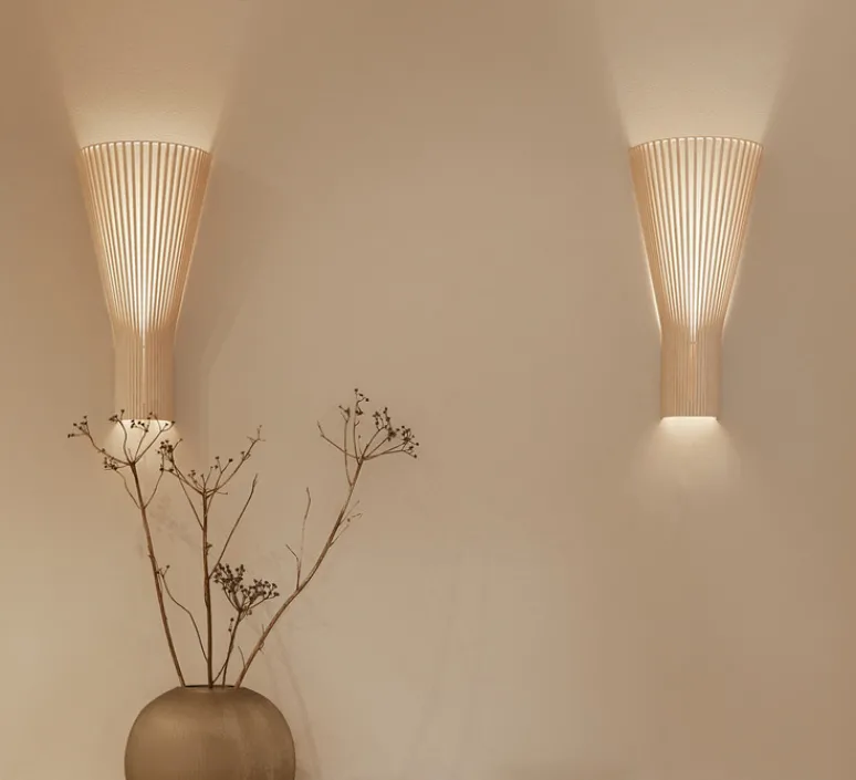L’applique murale se décline en deux versions : avec ou sans câble et en quatre couleurs : bouleau, noyer, blanc ou noir. Cette collection emblématique est déclinée en plusieurs modèles (suspension, applique murale, lampe à poser et lampadaire) que vous pourrez associer pour créer un ensemble harmonieux et raffiné. La face interne des lamelles est toujours en bouleau naturel. La lumière est dirigée vers le bas et s’échappe sur les côtés entre les lamelles.